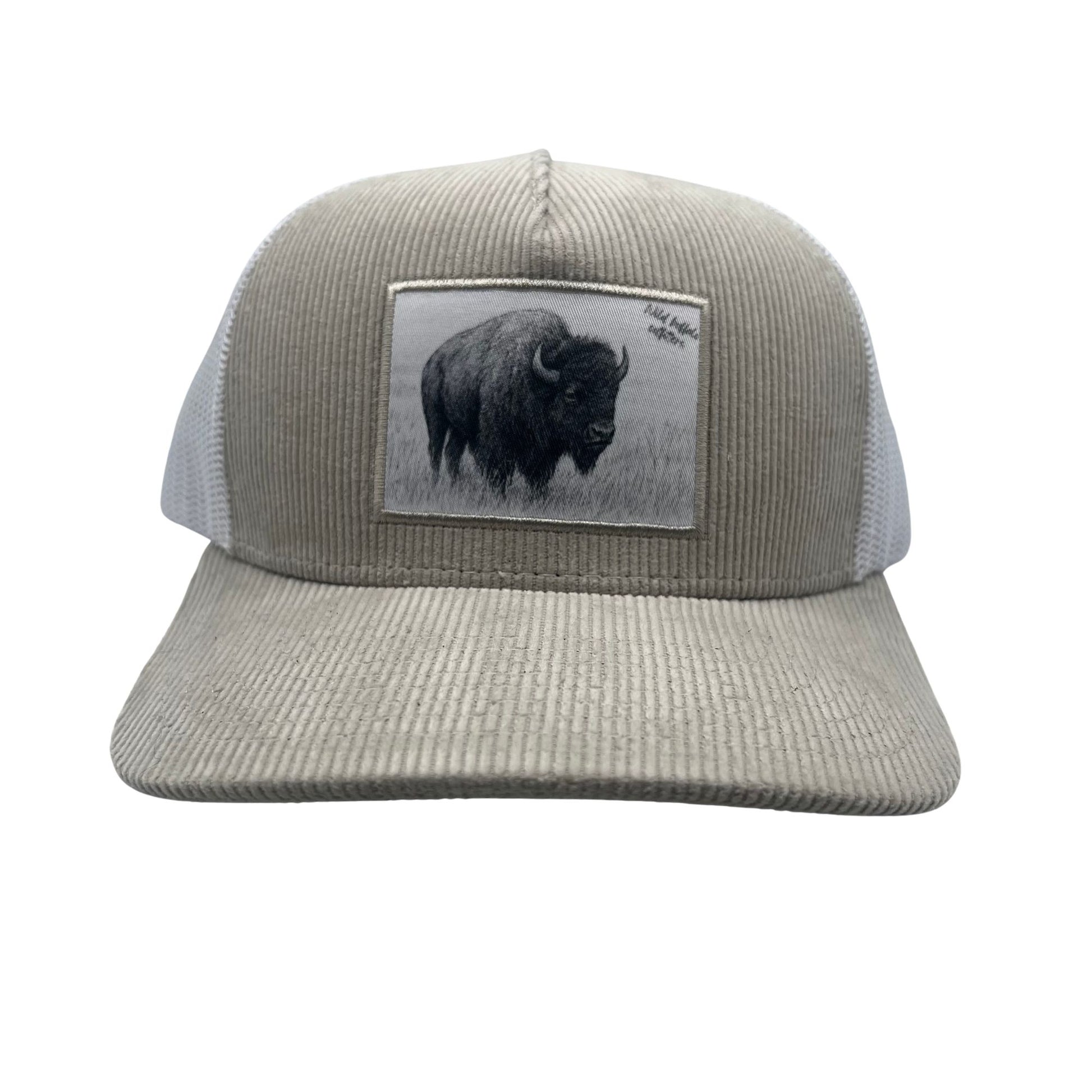Wild Buffalo Outfitters Khaki Corduroy Trucker Hat with Buffalo Patch